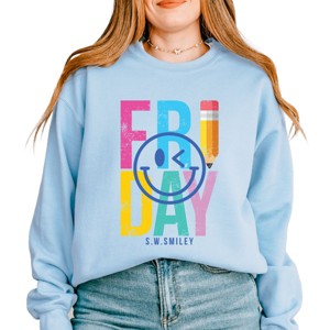 Product Name: Simply Sage Market S.W.Smiley Friday Pencil Sweatshirt - S - Light Blue