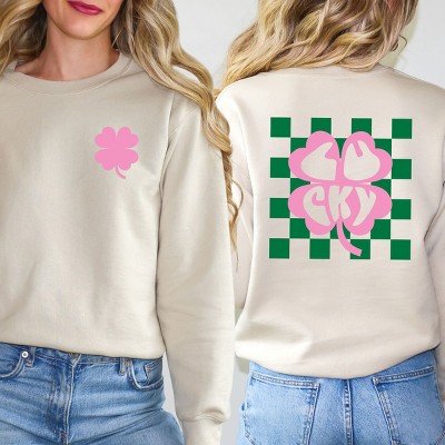 Add a touch of happiness to your day with the S.W.Smiley Smiley Clover Daisy design. This whimsical print features a cheerful smiley face surrounded by playful clovers and daisies, creating a fun and vibrant look. Perfect for spring or anytime you need a little pick-me-up, this design is sure to bring a smile to your face. The botanical elements add a touch of nature to the design, making it a joyful and cheerful addition to any product. Spread positivity and joy with the S.W.Smiley Smiley Clover Daisy print on your favorite items. Stay cozy and stylish in this Adult fit, soft and comfortable sweatshirt. Featuring a high-quality graphic design, this trendy piece is perfect for any casual occasion. Size up for an oversized look.