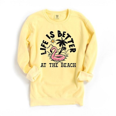 Simply Sage Market S.W.Smiley Smiley Face Outline Puff Print Garment Dyed Sweatshirt - S - Butter