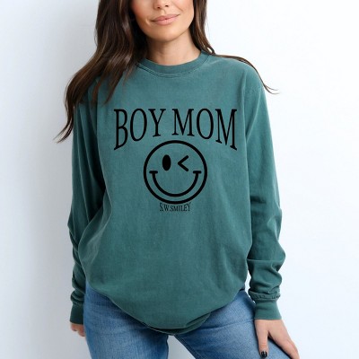 Product Name: Simply Sage Market S.W.Smiley Teach Varsity Arched Garment Dyed Long Sleeve - S - Blue Spruce