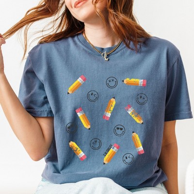 The 'S.W.Smiley Teach Varsity Arched' print-on-demand design features a vibrant and playful smiley face combined with a stylish varsity font in an arched layout. This design is perfect for those who want to spread positivity and a fun, contemporary vibe. Whether you're a teacher looking to inspire your students or just want to add a cool graphic design to your collection, this versatile design is sure to make a statement. Stand out from the crowd with this dynamic and modern print that is sure to bring a smile to anyone's face! Introducing our trendy Garment Dyed Tee. Adult fit with a vintage feel that improves with wear. Made from high-quality materials and featuring a unique print. Upgrade your wardrobe with this timeless piece.