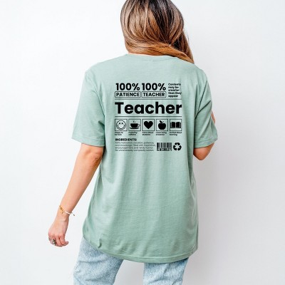 This fun print-on-demand design features a front and back design for teachers. The front showcases a the word 'Teacher' in a fun typewriter font, while the back displays a list of 'Teacher Recipe' ingredients such as patience, kindness, and creativity. This design is perfect for any teacher looking to add a touch of whimsy to their wardrobe. Spread positivity with this unique and vibrant design! Introducing our trendy Garment Dyed Tee. Adult fit with a vintage feel that improves with wear. Made from high-quality materials and featuring a unique print. Upgrade your wardrobe with this timeless piece.