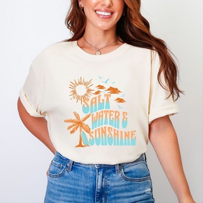 Embrace the essence of summer with the Salt Water And Sun Shine Circle print-on-demand design. This picturesque circle design features a beautiful combination of saltwater waves and shining sun, perfect for those who love the beach and the feeling of warmth on their skin. The design captures the peaceful and relaxing vibes of a beach vacation, allowing you to carry a piece of paradise wherever you go. Let the beauty of nature inspire you with this vibrant and dynamic print, reminding you of the joy and serenity that comes from being near the ocean. Introducing our Unisex Short Sleeve Tee, crafted from soft, high-quality materials for a comfortable fit. Featuring a trendy graphic design, this tee is perfect for adding a stylish touch to any outfit.