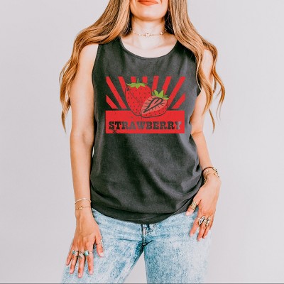 Simply Sage Market Strawberry Watercolor Chart Garment Dyed Tank
