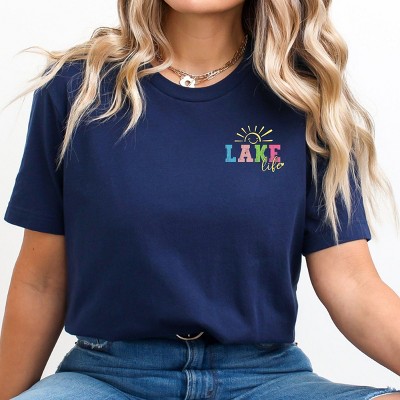 Product Name: Simply Sage Market Summer Vibes Sun Colorful Front and Back Design Short Sleeve Tee - L - True Navy