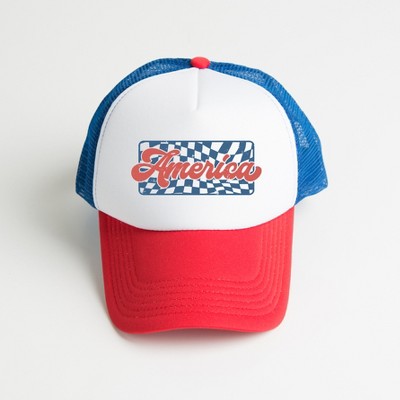 Simply Sage Market Sweet Land Of Liberty Retro Foam Trucker Hat - Adult - White/Navy