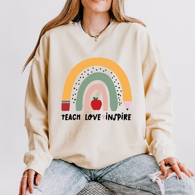 Spread positivity and inspiration with this colorful 'Teach Love Inspire Rainbow' design. The vibrant rainbow symbolizes hope and happiness, while the words 'Teach, Love, Inspire' encourage kindness and motivation. This design is perfect for teachers, mentors, or anyone who wants to make a positive impact. Whether you're looking for a unique gift or a statement piece for yourself, this print-on-demand design is sure to bring joy and inspiration to anyone who sees it. Embrace the power of love and education with this beautiful and uplifting design. Elevate your style with this trendy, unisex Garment Dyed Sweatshirt. The vintage feel only improves with wear, made from high-quality materials and featuring a unique print. Lightweight yet cozy, this piece is the perfect addition to your wardrobe.