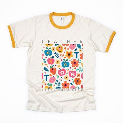 Spread positivity and inspiration with this colorful 'Teach Love Inspire Rainbow' design. The vibrant rainbow symbolizes hope and happiness, while the words 'Teach, Love, Inspire' encourage kindness and motivation. This design is perfect for teachers, mentors, or anyone who wants to make a positive impact. Whether you're looking for a unique gift or a statement piece for yourself, this print-on-demand design is sure to bring joy and inspiration to anyone who sees it. Embrace the power of love and education with this beautiful and uplifting design. Elevate your wardrobe with our vintage-inspired Ringer Tee. This trendy high-end graphic tee features a soft feel, ribbed binding on the neckline and sleeves for added style.