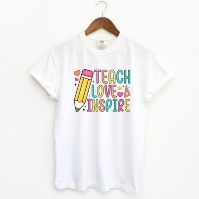 This adorable design features the word 'Teach' stacked on top of each other, with cute heart accents on the side. Perfect for teachers who love spreading love and knowledge in the classroom. The whimsical and colorful hearts add a fun and playful touch to the design, making it a delightful addition to any teacher's wardrobe. Introducing our trendy Garment Dyed Tee. Unisex fit with a vintage feel that improves with wear. Made from high-quality materials and featuring a unique print. Upgrade your wardrobe with this timeless piece.