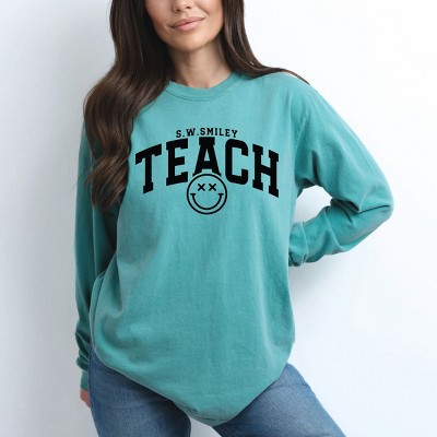 Simply Sage Market Teach Stacked With Hearts Garment Dyed Long Sleeve - 1 of 3