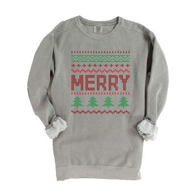 Simply Sage Market Ugly Sweater Merry Lightweight Garment Dyed Sweatshirt - 1 of 4