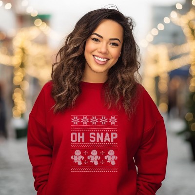 Get ready to spread some holiday cheer with this fun and festive 'Ugly Sweater Oh Snap' design. Whether you're attending an ugly sweater party or simply want to show off your quirky style, this design is perfect for the holiday season. Makes a great gift for friends and family too! Stay cozy and stylish in this Adult fit, soft and comfortable sweatshirt. Featuring a high-quality graphic design, this trendy piece is perfect for any casual occasion. Size up for an oversized look.