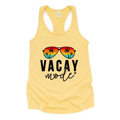Embrace the laid-back vibes of vacation mode with this stylish 'Vacay Mode Palm Tree' design. Featuring a serene palm tree silhouette, this design captures the essence of tropical paradise. Perfect for anyone craving a touch of relaxation and wanderlust, this design is ideal for those who love to travel, soak up the sun, and enjoy the beauty of nature. Whether you're headed to the beach, exploring a new destination, or simply dreaming of your next holiday, this print on demand design is the perfect way to bring a little piece of paradise with you wherever you go. Stay trendy all summer long with our women's fitted racerback tank. Perfect for everyday wear, this tank features a stylish curved hem and a graphic print. Embrace the heat in style with this must-have piece for the season.