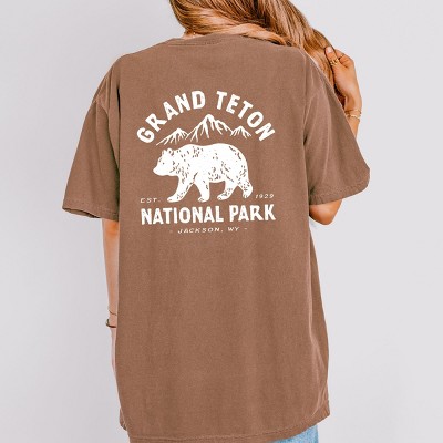 Simply Sage Market Vintage Grand Teton National Park Front And Back Garment Dyed Tee - L - Espresso
