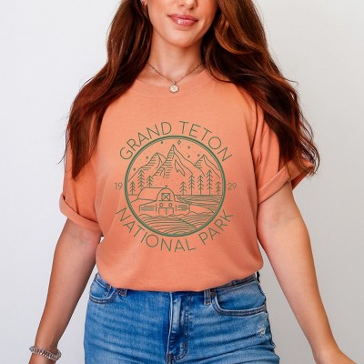 Capture the essence of the rugged beauty of the Grand Teton National Park with this vintage-inspired print. The stunning mountain landscape is depicted in a retro style, perfect for nature lovers and outdoor enthusiasts. Whether you're a hiker, camper, or simply enjoy the great outdoors, this design will bring a touch of wilderness to your wardrobe . Let the majestic peaks and breathtaking vistas of Grand Teton National Park inspire your next adventure and showcase your love for nature and exploration. Introducing our trendy Garment Dyed Tee. Unisex fit with a vintage feel that improves with wear. Made from high-quality materials and featuring a unique print. Upgrade your wardrobe with this timeless piece.