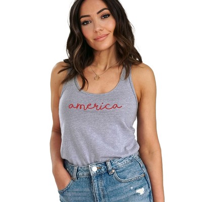 Product Name: Simply Sage Market Women's America Vibes Stacked Racerback Graphic Tank - S - Heather Grey