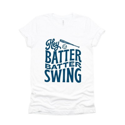 Product Name: Simply Sage Market Women's Batter Batter Swing Stacked Short Sleeve Graphic Tee - M - White