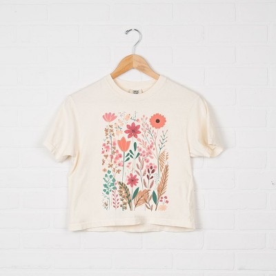 Product Name: Simply Sage Market Women's Bloom Flower Short Sleeve Garment Dyed Tee - L - White