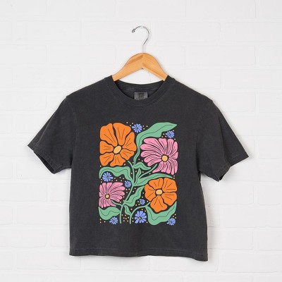 Product Name: Simply Sage Market Women's Boho Flowers Circle Short Sleeve Relaxed Fit Cropped Tee - S - Butter