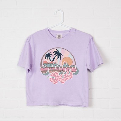 Product Name: Simply Sage Market Women's Boho Focus On The Good Short Sleeve Relaxed Fit Cropped Tee - S - Orchid