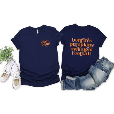 Product Name: Simply Sage Market Women's Boho Neutral Christmas Chart Front and Back Short Sleeve Graphic Tee - L - TrueNavy