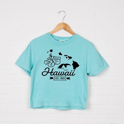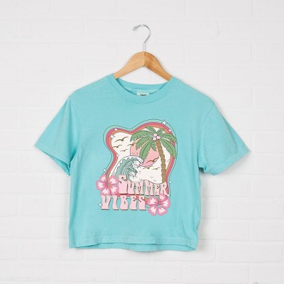 Product Name: Simply Sage Market Women's Checkered Summer Short Sleeve Relaxed Fit Cropped Graphic Tee - S - ChalkyMint