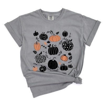 Product Name: Simply Sage Market Women's Colorful Pumpkins Short Sleeve Garment Dyed Tee - M - Grey