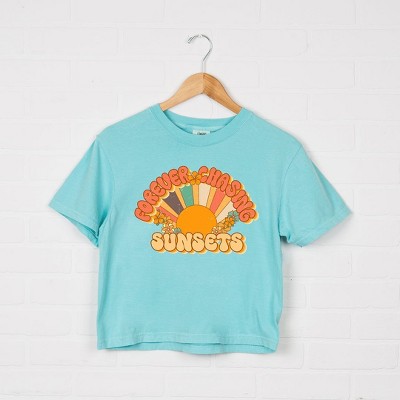 Product Name: Simply Sage Market Women's Forever Chasing Sunsets Wavy Short Sleeve Relaxed Fit Cropped Tee - S - ChalkyMint