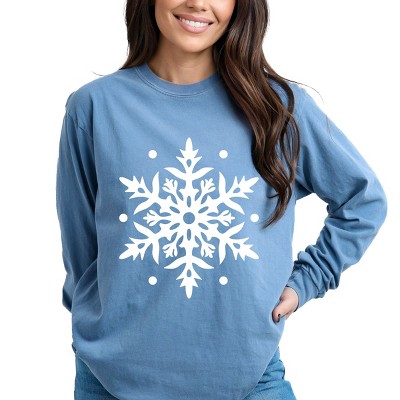 Simply Sage Market Women's Giant Snowflake Long Sleeve Garment Dyed Tee - 1 of 4