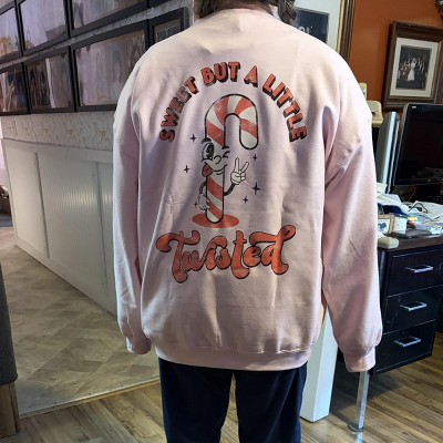 Simply Sage Market Women's Graphic Sweatshirt A Little Twisted Candy Cane Front and Back - S - Light Pink