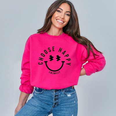 Product Name: Simply Sage Market S.W.Smiley Choose Happy Lighting Eyes Sweatshirt - L - Raspberry