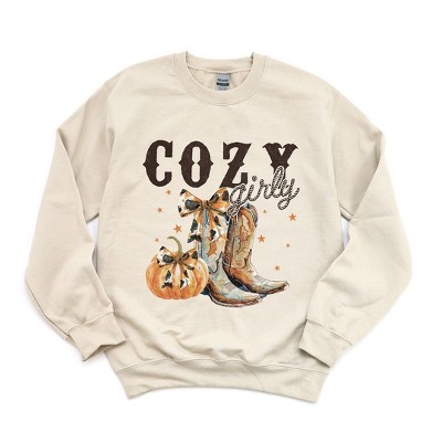 Product Name: Simply Sage Market Women's Graphic Sweatshirt Coquette Fall Pumpkin and Bows - XL - Dust