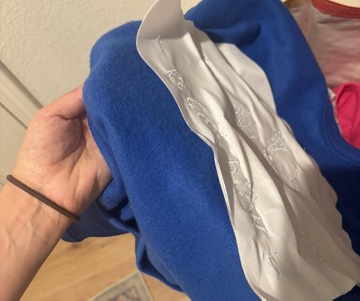 The fabric is okay and the inside has a big white almost paper like thing that feels uncomfortable. I wish this was cut off to make it less awkward to wear. Pictures to show what I mean.