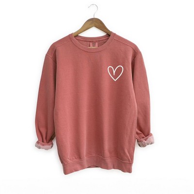Product Name: Simply Sage Market Women's Graphic Sweatshirt Embroidered Hand Drawn Heart -White - S - Maroon