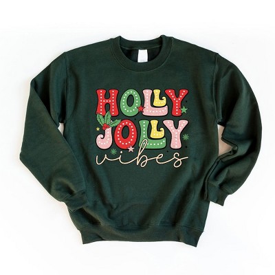 Product Name: Simply Sage Market Women's Graphic Sweatshirt Holly Jolly Bold Cursive Puff Print - S - Forest