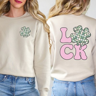 Product Name: Simply Sage Market Women's Graphic Sweatshirt Lucky Clover Checkered Front and Back - 2XL - Dust