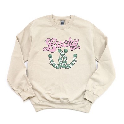 Product Name: Simply Sage Market Women's Graphic Sweatshirt Lucky Horseshoes Front and Back - 2XL - Dust