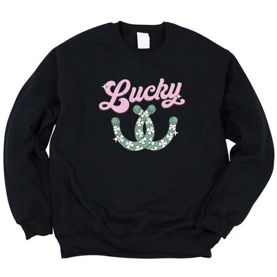 Product Name: Simply Sage Market Women's Graphic Sweatshirt Lucky Horseshoes Front and Back - S - Midnight