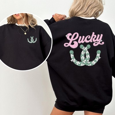 Simply Sage Market Women's Graphic Sweatshirt Lucky Horseshoes - M - Midnight