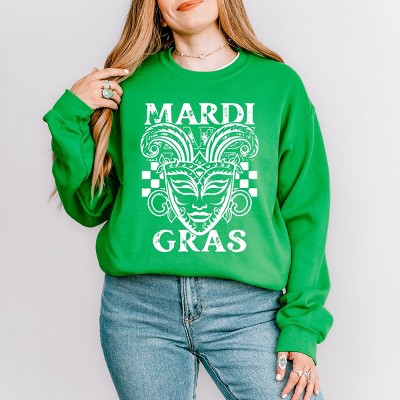Let the festivity of Mardi Gras come alive with this vibrant Mardi Gras Mask design. Featuring intricate details and bold colors, this design captures the spirit of the celebration. Perfect for anyone looking to add a touch of fun and mystery to their wardrobe or home decor. Whether you're heading to a Mardi Gras parade or just wanting to embrace the festive vibes, this design is sure to make a statement! Stay cozy and stylish in this unisex fit, soft and comfortable sweatshirt. Featuring a high-quality graphic design, this trendy piece is perfect for any casual occasion. Size up for an oversized look.