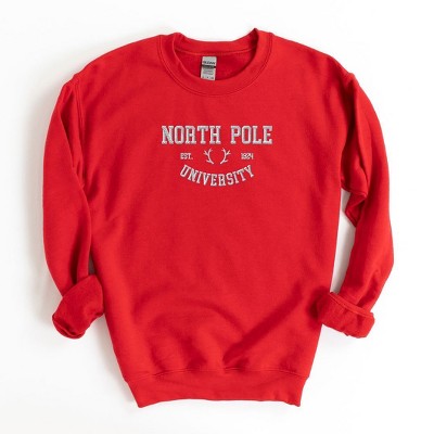 Product Name: Simply Sage Market North Pole University Deer Sweatshirt - L - Maroon
