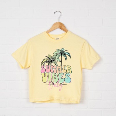 Product Name: Simply Sage Market Women's Hibiscus Spray Short Sleeve Relaxed Fit Cropped Tee - S - Butter