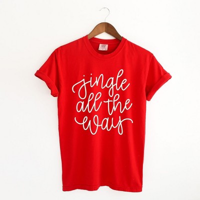 Product Name: Simply Sage Market Women's Jingle Bells Bold Cursive Short Sleeve Garment Dyed Tee - M - Crimson