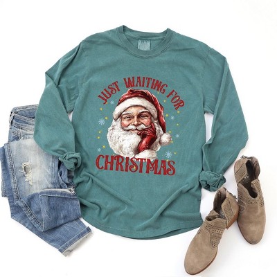 Product Name: Simply Sage Market Women's Just Waiting For Christmas Santa Short Sleeve Graphic Tee - M - Grass