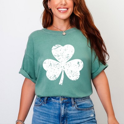 Product Name: Simply Sage Market Women's Lucky Clover Distressed Short Sleeve Garment Dyed Tee - S - Black