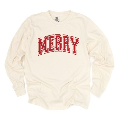 Simply Sage Market Merry Varsity Thick Outline Garment Dyed Long Sleeve - 1 of 4