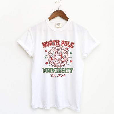 Product Name: Simply Sage Market Women's North Pole University Reindeer Short Sleeve Garment Dyed Tee - XL - White