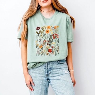 Product Name: Simply Sage Market Women's Pastel Wildflowers Short Sleeve Garment Dyed Tee - L - Light Green