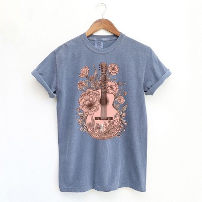Simply Sage Market Pink Guitar Floral Garment Dyed Tee - 1 of 4