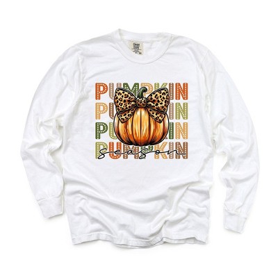 Product Name: Simply Sage Market Women's Pumpkin Distressed Long Sleeve Garment Dyed Tee - S - White